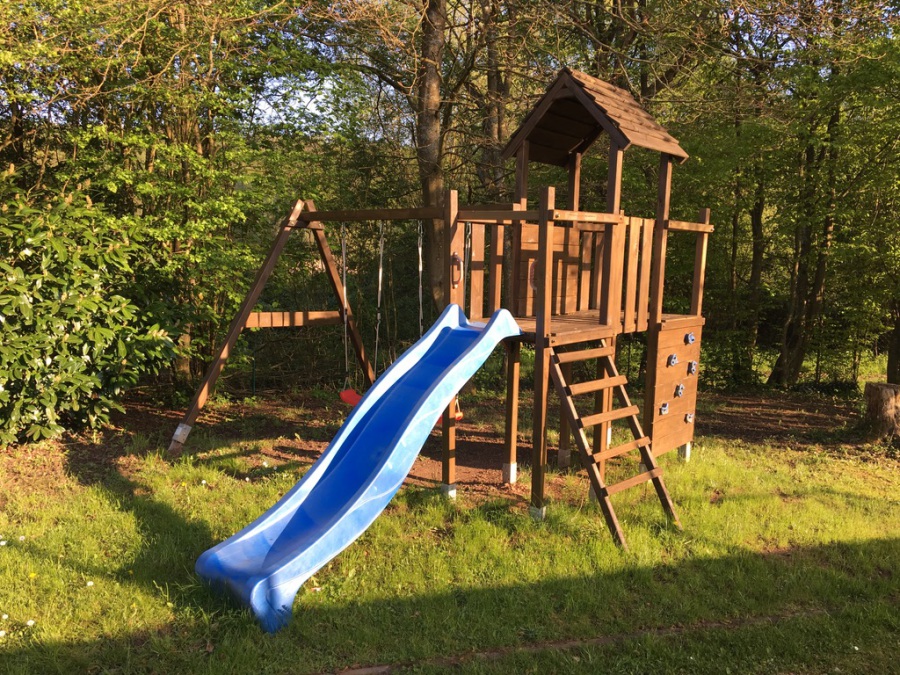 Spielplatz mit Schauckel, Rutsche und Kletterturm für die Kinder